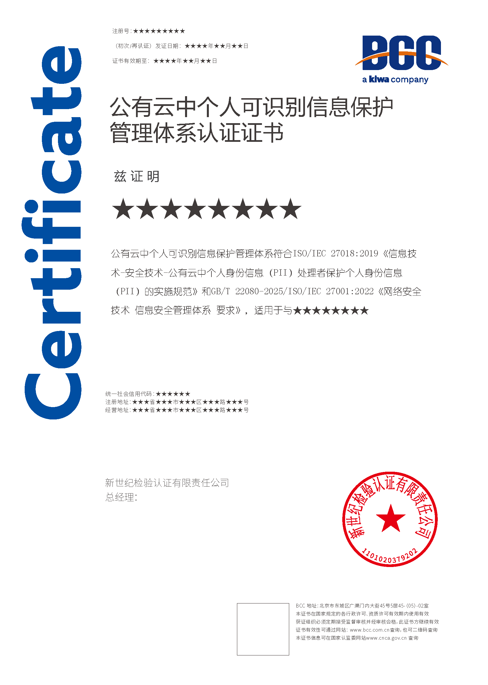 本頁涉及的認證服務(wù)中均有對應(yīng)的《認證實施規(guī)則》,BCC擁有其最終解釋權(quán)。任何組織及個人未經(jīng)BCC許可,不得以任何形式全部或部分使用(法律要求除外)認證相關(guān)信息。如需獲取相關(guān)實施規(guī)則請用以下方式聯(lián)系獲?。弘娫挘?10-58579316 郵箱:fwjs@kiwa.cn