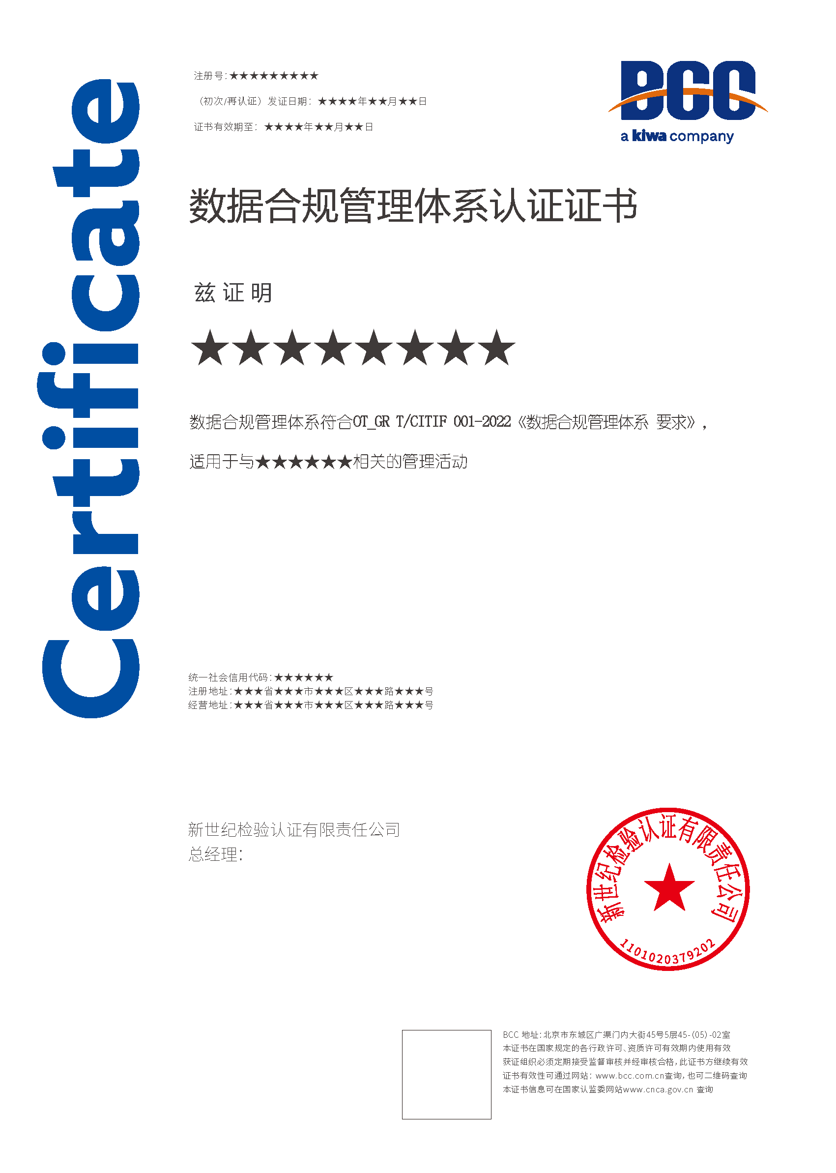 本頁(yè)涉及的認(rèn)證服務(wù)中均有對(duì)應(yīng)的《認(rèn)證實(shí)施規(guī)則》,BCC擁有其最終解釋權(quán)。任何組織及個(gè)人未經(jīng)BCC許可,不得以任何形式全部或部分使用(法律要求除外)認(rèn)證相關(guān)信息。如需獲取相關(guān)實(shí)施規(guī)則請(qǐng)用以下方式聯(lián)系獲?。弘娫挘?10-58579316 郵箱:fwjs@kiwa.cn